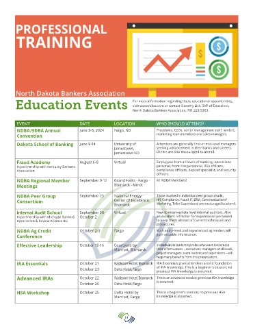 NDBA Ag Credit October 2-3 Fargo Both entry-level and experienced ag lenders will