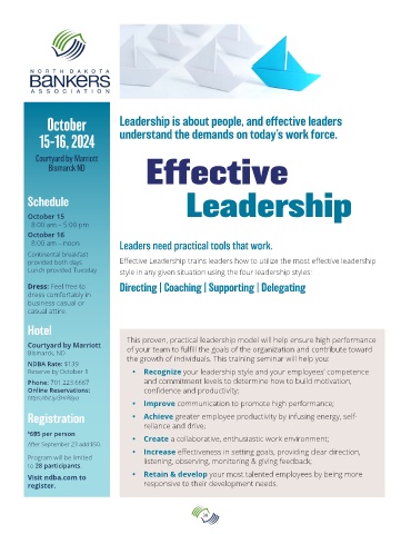 Reserve by October 1 • Recognize your leadership style and your employees’ competence