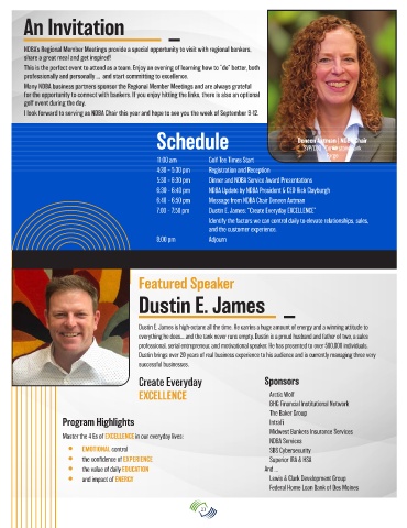 for the opportunity to connect with bankers. If you enjoy hitting the links, there is also an optional
