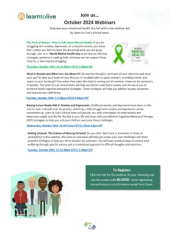 of anxiety. The Learn to Live clinical team will help you better understand anxiety and introduce you to